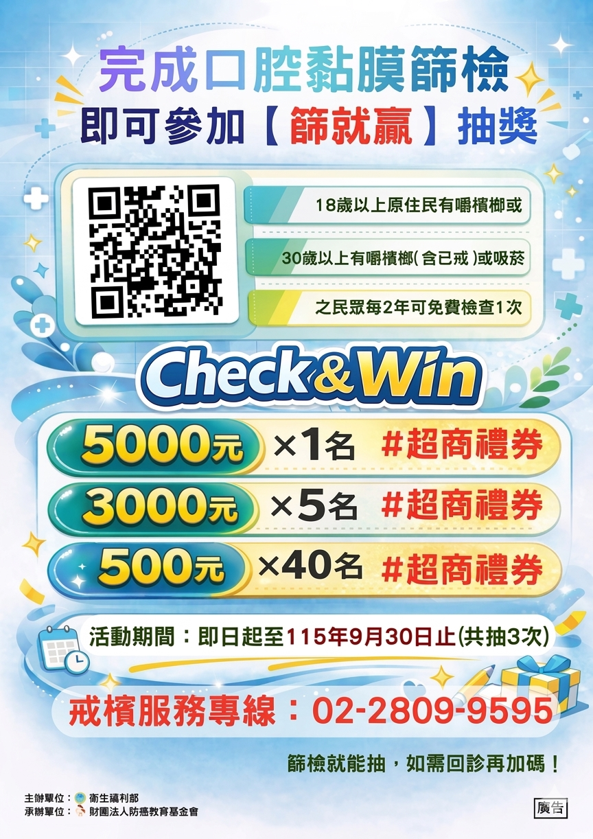 115年度「Check & Win 篩就贏」抽獎活動辦法 (含回診追蹤加碼)