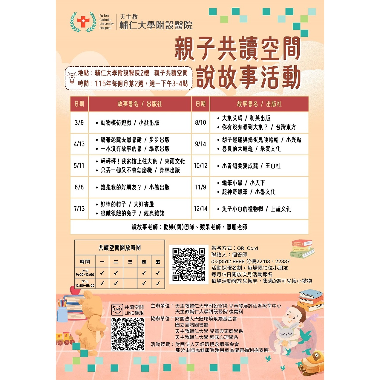 115年 親子共讀空間活動 115.03.09 親子共讀活動 114.12.15親子共讀活動 114.11.10親子共讀活動 114.10.13 親子共讀活動 114.09.22 親子共讀活動 114.08.11親子共讀活動 114.08.06親子共讀活動 114.07.23親子共讀活動 114.07.14親子共讀活動 114.06.09親子共讀活動 114.05.12親子共讀活動 114.05.12共讀空間開幕 114.04.14親子共讀活動 114.03.10親子共讀活動 114年親子共讀空間活動