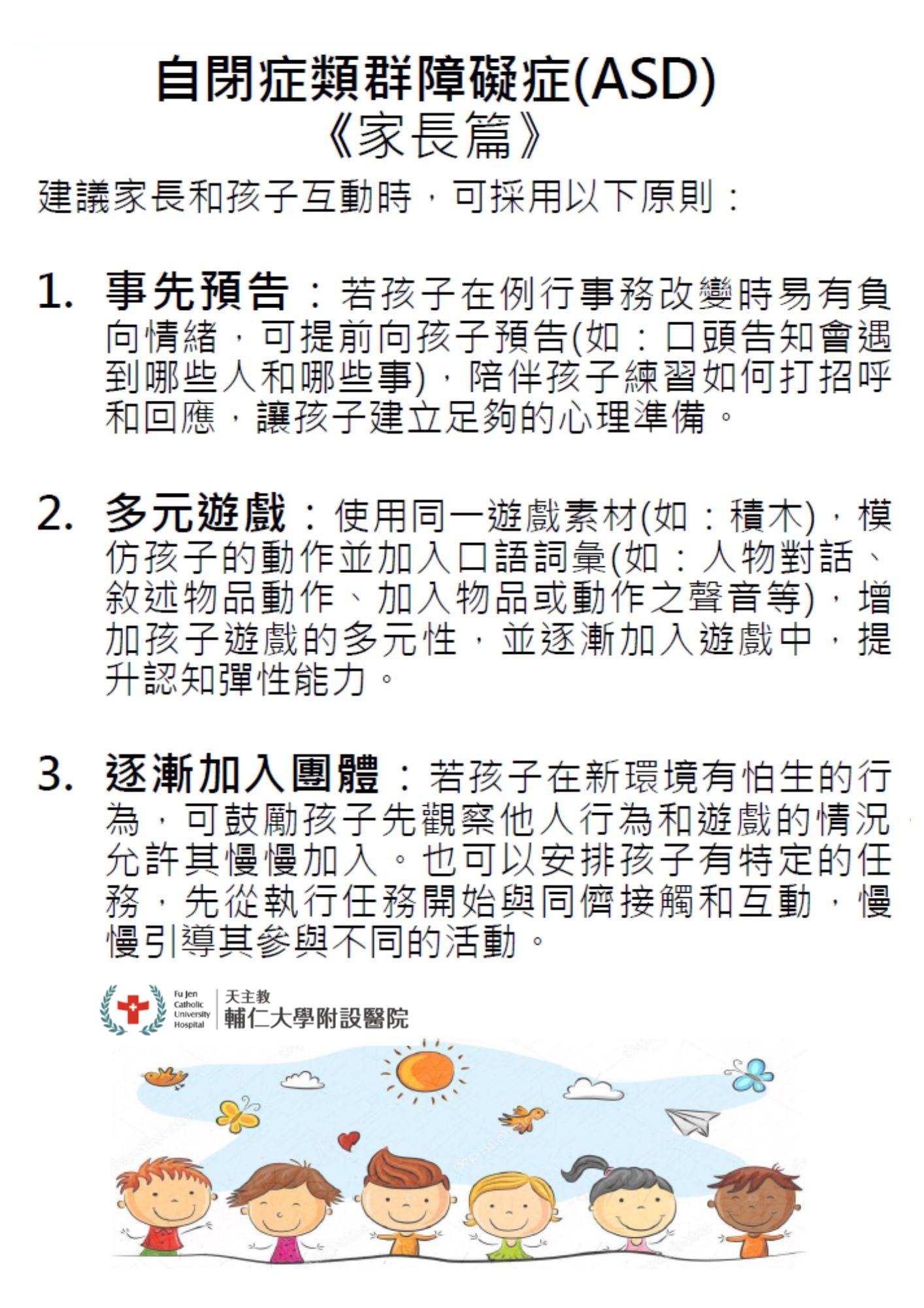 自閉症類群障礙症(ASD) 《家長篇》 Post author:a00107 Post published:2026 年 1 月 5 日 Post category:自閉症 / 衛教資源 輔大醫院復健科 臨床心理師 You Might Also Like 淺談兒童注意力缺乏過動症(上) 2025 年 12 月 23 日 和我的孩子做朋友《 行為篇 》 2025 年 8 月 7 日 什麼是視知覺? 2025 年 9 月 2 日