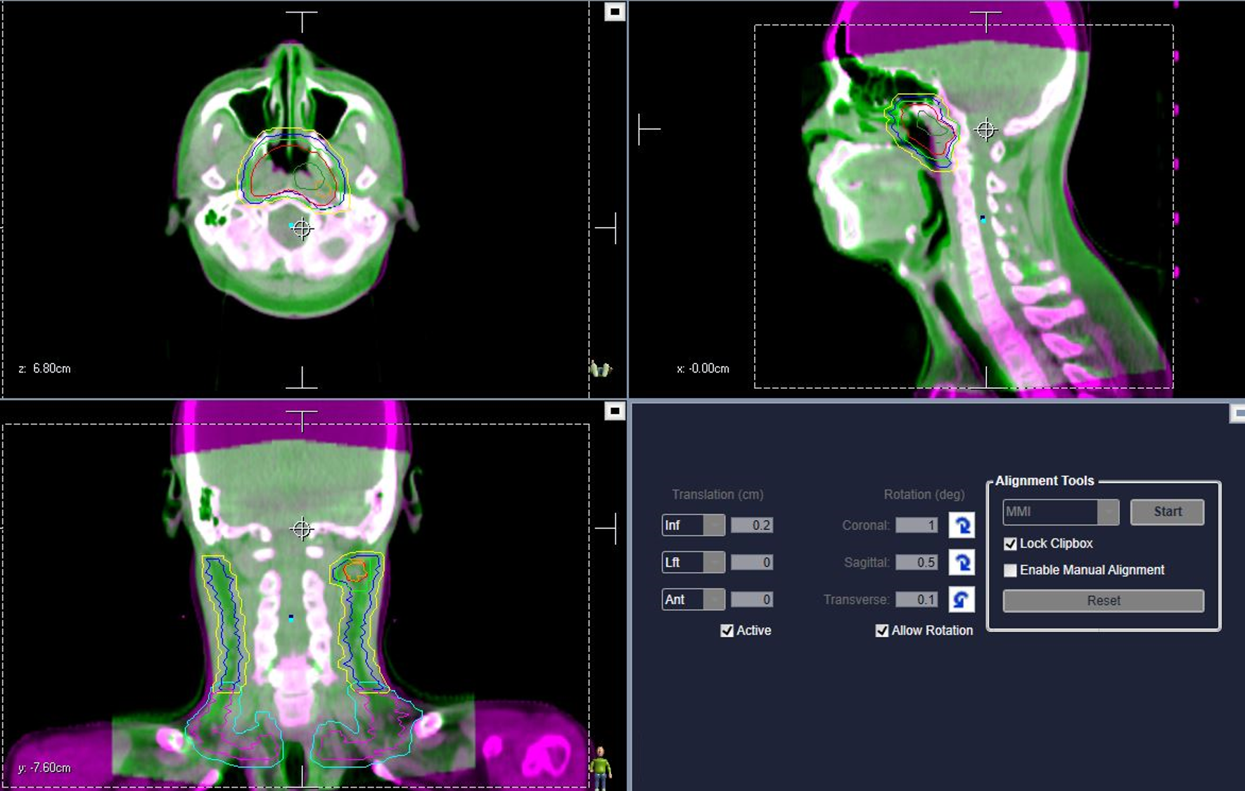 直線加速器(Linac Accelerator) ☀本科使用機種為醫學中心等級之Elekta Versa HD,可產生高能量的放射線(X光及電子)來對腫瘤細胞造成傷害,達到治療的效果,也可用於緩解性治療以減輕腫瘤壓迫、轉移所導致的疼痛,其配備有多葉式準直儀、電子驗證影像系統,可執行三度空間順形放射治療 (3D Conformal Radiotherapy) 、強度調控放射治療 (Intensity Modulated Radiation Therapy)、弧形調控放射治療(Volumetric modulated arc therapy, VMAT)及立體定位放射線治療(Stereotactic body radiation theray, SBRT)。 本院搭載高解析度X光二維影像、三維錐狀射束電腦斷層影像(Cone beam CT, CBCT)及四維錐狀射束電腦斷層影像(4DCT),治療中可透過影像融合技術做精準的影像定位及治療位置之校正,大幅提升腫瘤治療的準確性及降低週邊正常組織器官的劑量;4DCT則應用於呼吸起伏的誤差修正,醫師可根據呼吸狀況即時調整治療位置,以達到更精確的治療效果。