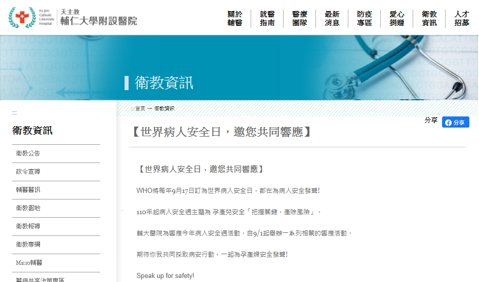 3.宣傳Facebook「就醫安全非知不可」線上響應活動