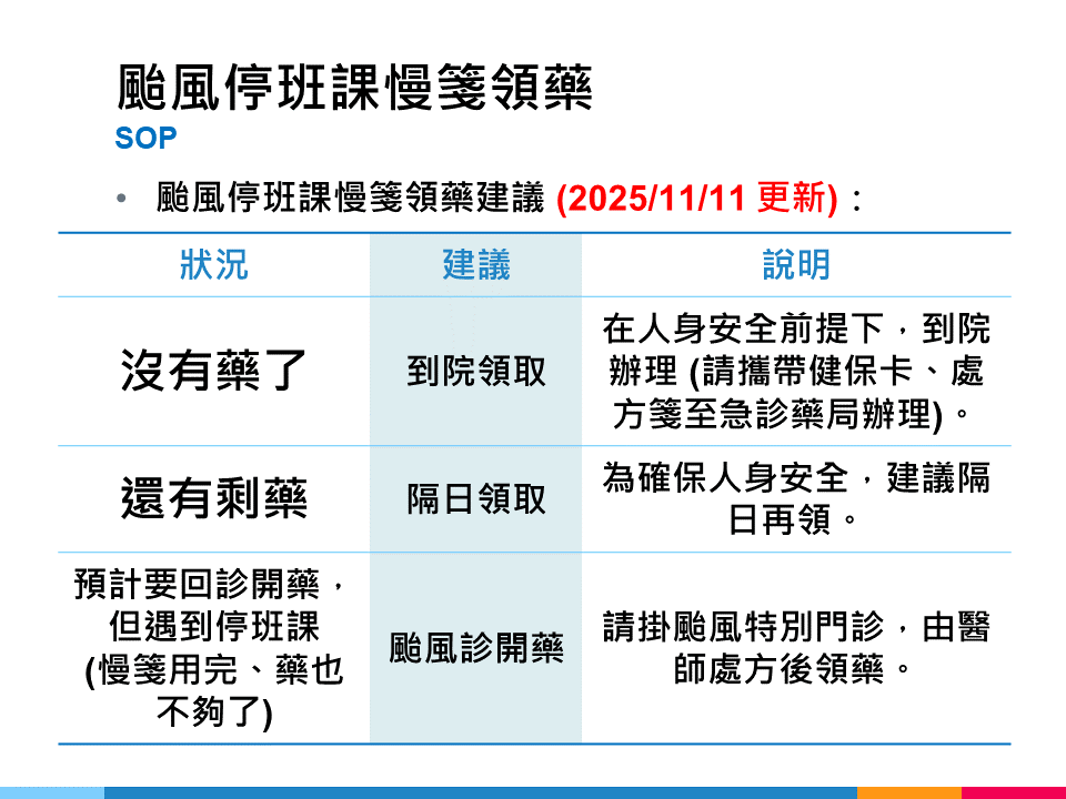 颱風停班停課【慢箋領藥】事項
